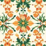 Decoratief bloemenpatroon geĆÆnspireerd op Arts and Crafts ontwerp uit de late 19e eeuw, met verweven tulpen en lelies, herhalende botanische motieven, rijke aardtinten en diepe groentinten, platte, gestileerde vormen, een gevoel van met de hand bedrukt textiel, sierlijke symmetrie en elegant vintage vakmanschap.