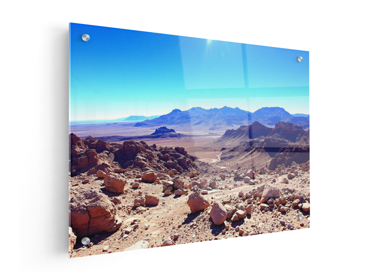 Plexiglas zorgt voor een mooie weerspiegeling, maar is niet transparant door de witte folie aan de achterzijde. Deze folie hoef je dus niet te verwijderen bij het ophangen. Bij fotorealistische prints geeft dit een bijzonder fraai effect, maar uiteraard staat het luxe en modern bij al onze designs -- ook bij de designs die je zelf hebt gemaakt.