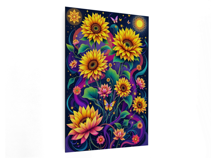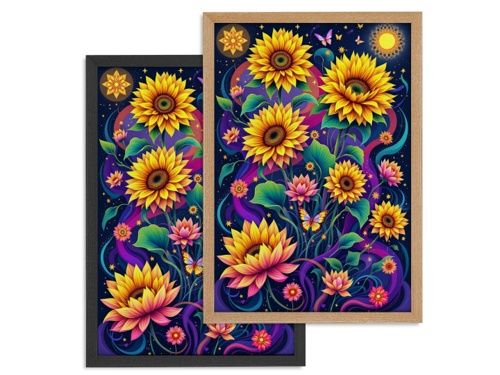 Bij iedere afbeelding benoemen wij de prompt waarmee wij dit design hebben gegenereerd. Zo kun je eenvoudig aanpassingen maken die jouw visie uniek maken en op de pagina 'Maak jouw wanddecoratie' zelf een design creeren dat niemand anders heeft!