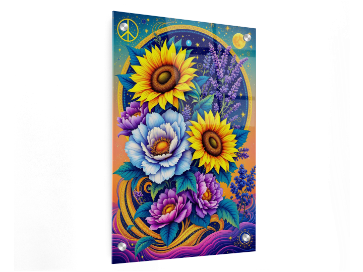 Plexiglas zorgt voor een mooie weerspiegeling, maar is niet transparant door de witte folie aan de achterzijde. Deze folie hoef je dus niet te verwijderen bij het ophangen. Bij fotorealistische prints geeft dit een bijzonder fraai effect, maar uiteraard staat het luxe en modern bij al onze designs -- ook bij de designs die je zelf hebt gemaakt.