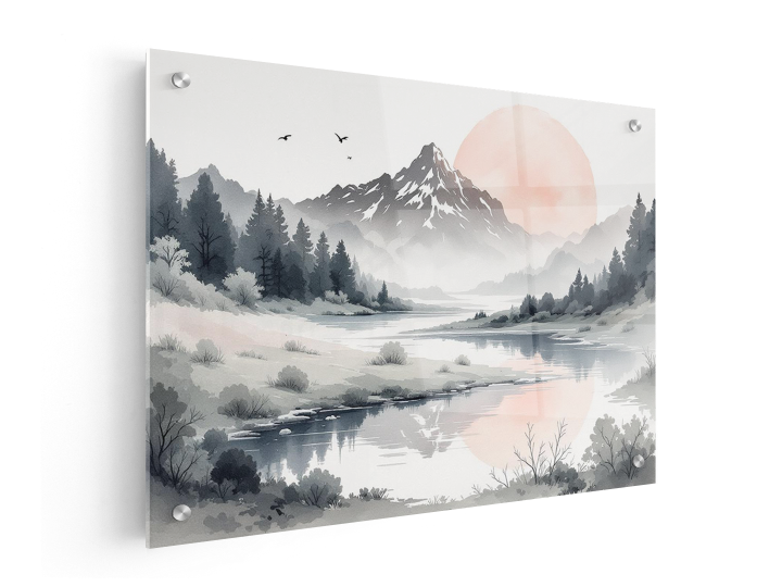 Plexiglas zorgt voor een mooie weerspiegeling, maar is niet transparant door de witte folie aan de achterzijde. Deze folie hoef je dus niet te verwijderen bij het ophangen. Bij fotorealistische prints geeft dit een bijzonder fraai effect, maar uiteraard staat het luxe en modern bij al onze designs -- ook bij de designs die je zelf hebt gemaakt.