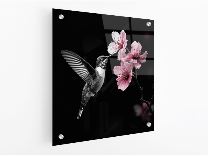 Plexiglas zorgt voor een mooie weerspiegeling, maar is niet transparant door de witte folie aan de achterzijde. Deze folie hoef je dus niet te verwijderen bij het ophangen. Bij fotorealistische prints geeft dit een bijzonder fraai effect, maar uiteraard staat het luxe en modern bij al onze designs -- ook bij de designs die je zelf hebt gemaakt.