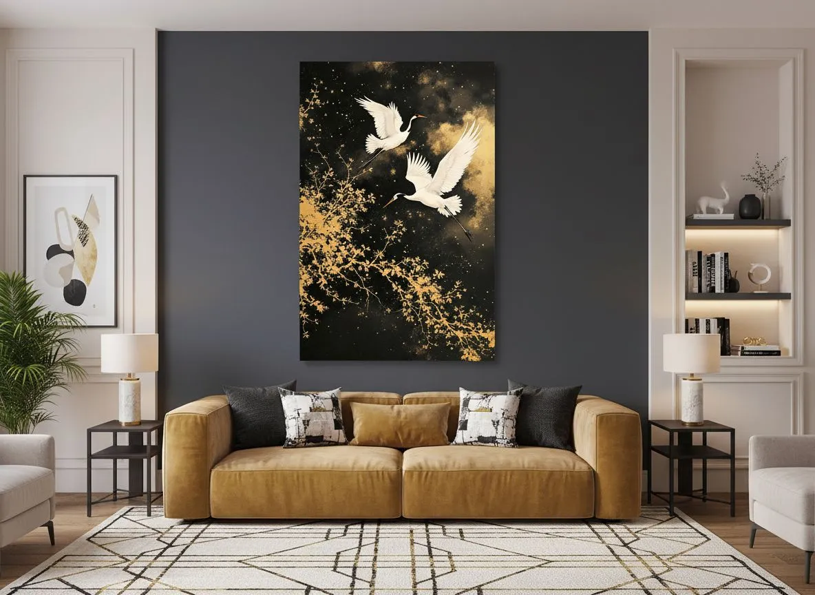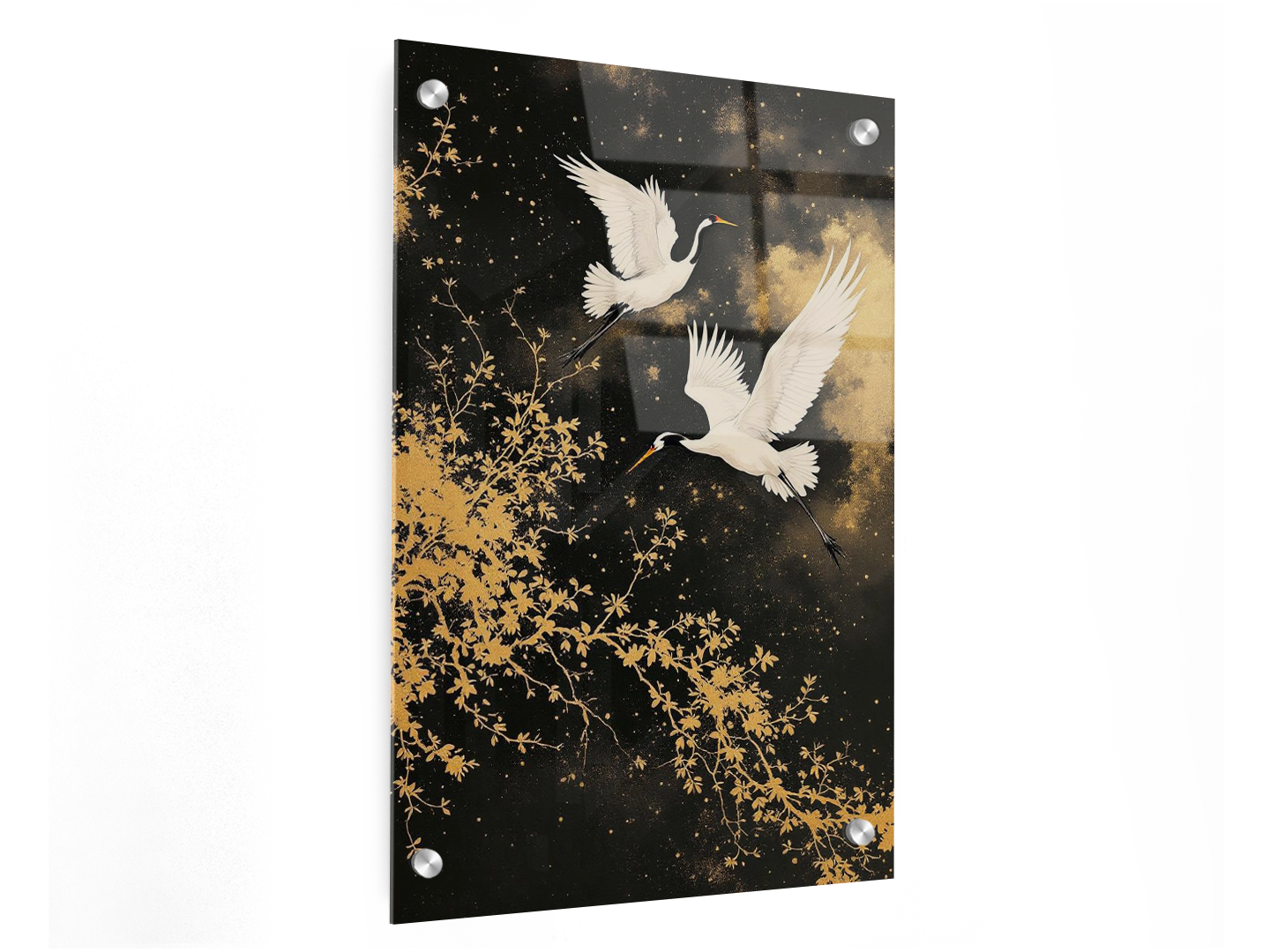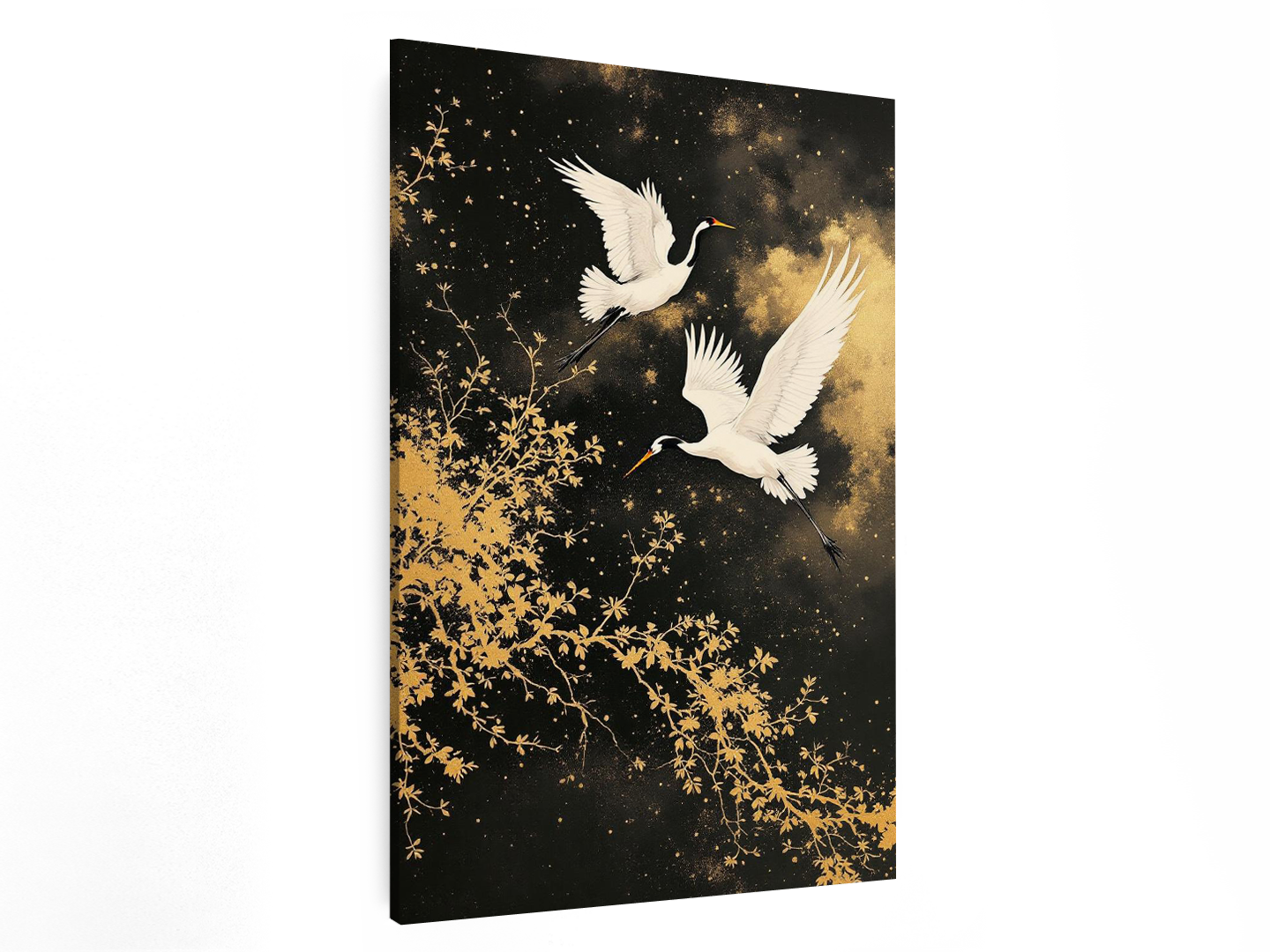 Kraanvogels met gouden achtergrond