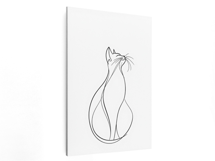 Abstract portret van een kat, in één doorlopende lijn stijl, minimalistische moderne kunst, elegante en gebalanceerde compositie, witte achtergrond.