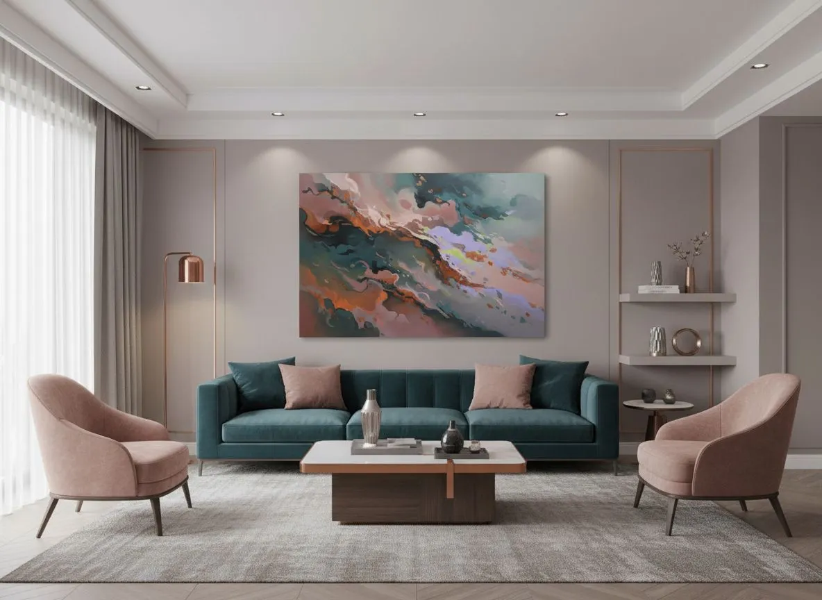 Dit design maakt deel uit van onze Abstracte kunst collectie. Abstracte kunst geeft een luxe uitstraling, vaak eenvoudig in design met eventueel ruimte voor vrije interpretatie, wat het dan juist weer interessant maakt om naar te kijken. Echt een aanrader voor ieder interieur! Wil je nou echt iets unieks?… kopieer dan deze prompt en plak deze (eventueel met nog wat persoonlijke aanpassingen) in onze Image Generator. Hierdoor haal je een echt uniek design in huis!