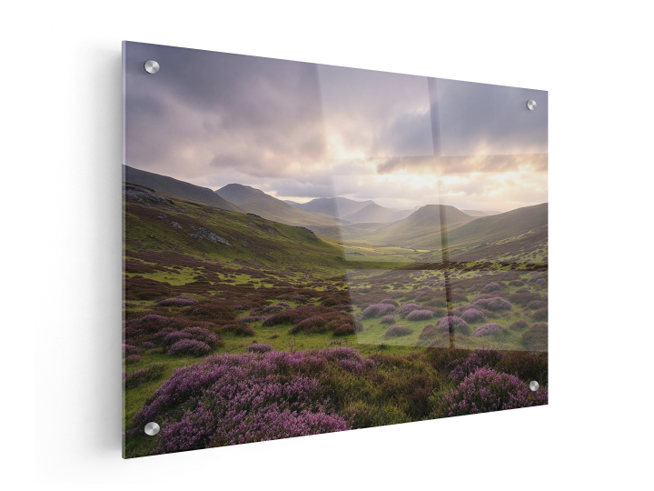 Plexiglas zorgt voor een mooie weerspiegeling, maar is niet transparant door de witte folie aan de achterzijde. Deze folie hoef je dus niet te verwijderen bij het ophangen. Bij fotorealistische prints geeft dit een bijzonder fraai effect, maar uiteraard staat het luxe en modern bij al onze designs -- ook bij de designs die je zelf hebt gemaakt.