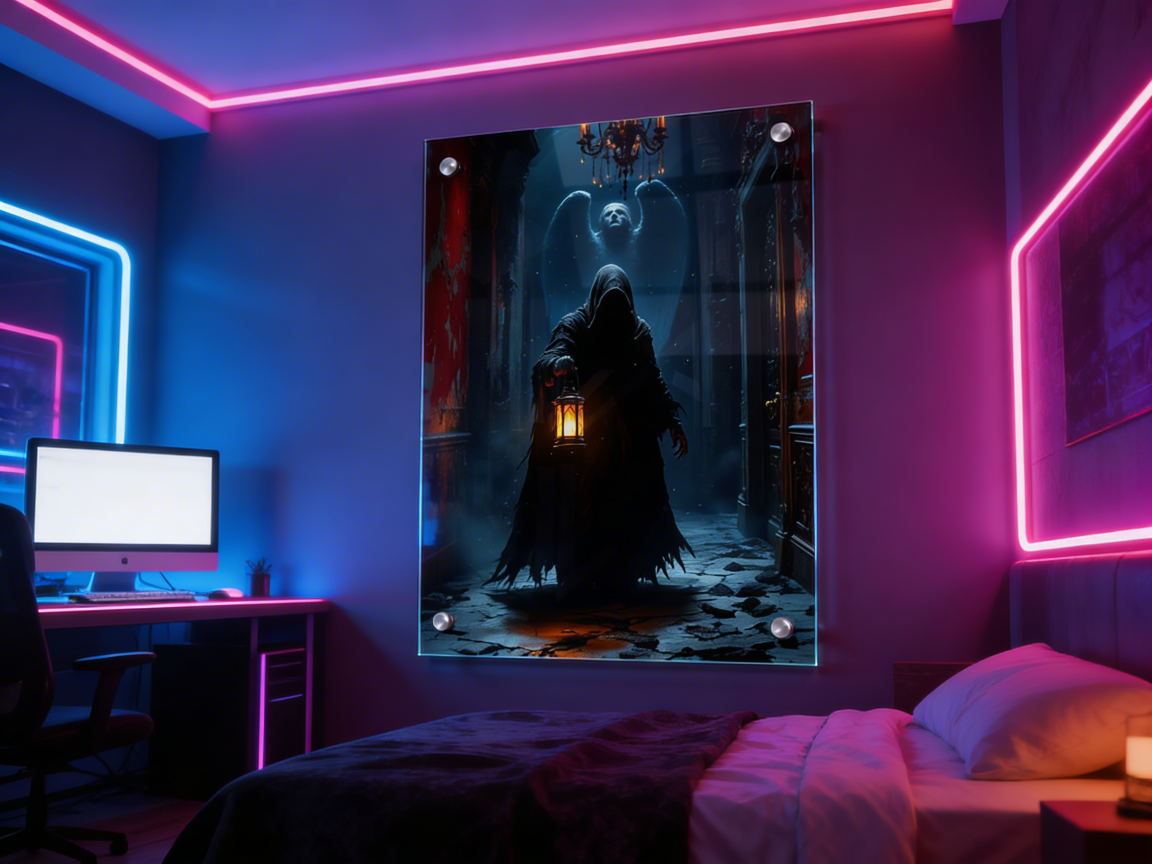 Dit is een design van onze game inspired / fantasy collectie. Wie weet herken jij jouw favoriete game wel in dit design. Deze collectie brengt fantasie en realiteit samen in krachtige, visuele ontwerpen die direct opvallen. Geïnspireerd door games en denkbeeldige werelden, maar altijd met een stijlvolle en moderne afwerking. Hierdoor blijven de prints volwassen en geschikt voor een breed interieur. Perfect voor wie persoonlijkheid en creativiteit wil laten terugkomen in zijn ruimte, zonder dat het kinderlijk of druk wordt. Deze prints komen ook goed tot zijn recht in een gaming room of man-cave. Je kunt dit design aanpassen, variaties maken of zelf tweaken om een unieke versie te creëren die volledig bij jou past.
