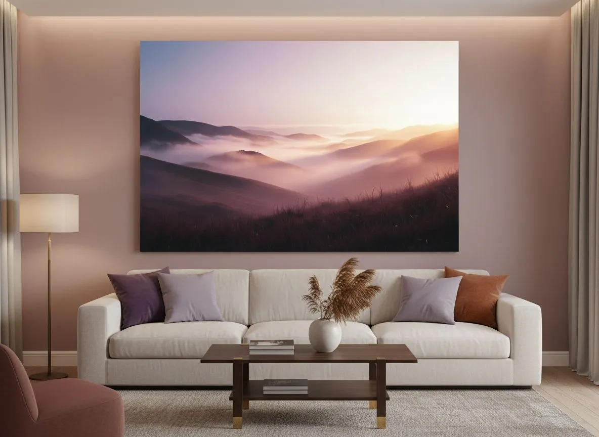 Dit design maakt deel uit van onze Landschappen collectie. Landschappen hebben een rustige en elegante uitstraling met vaak mooie simplistische kleurpatronen. Echt een mooie blikvanger voor jouw interieur! Wil je nou echt iets unieks?… kopieer dan deze prompt en plak deze (eventueel met nog wat persoonlijke aanpassingen) in onze Image Generator. Hierdoor haal je een echt uniek design in huis!