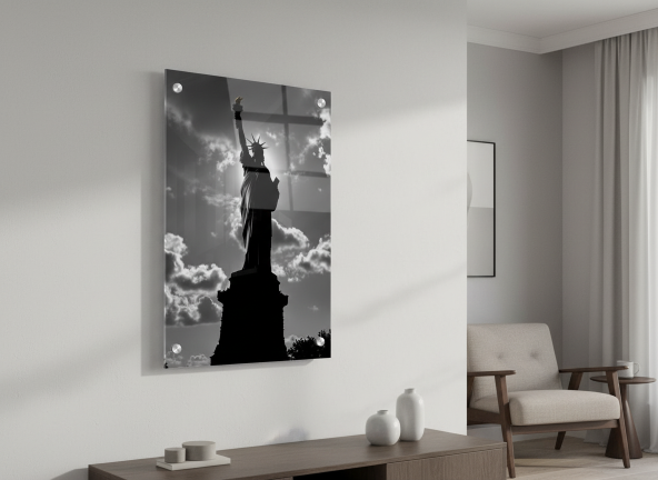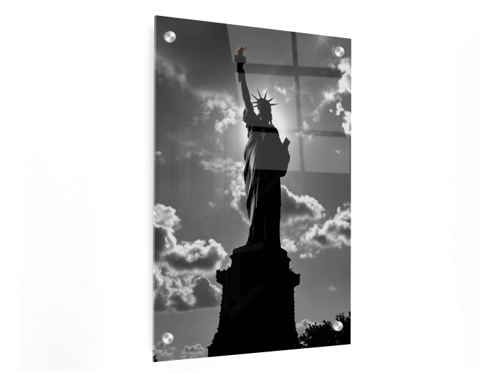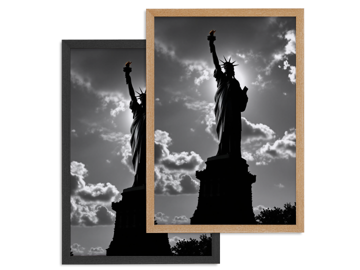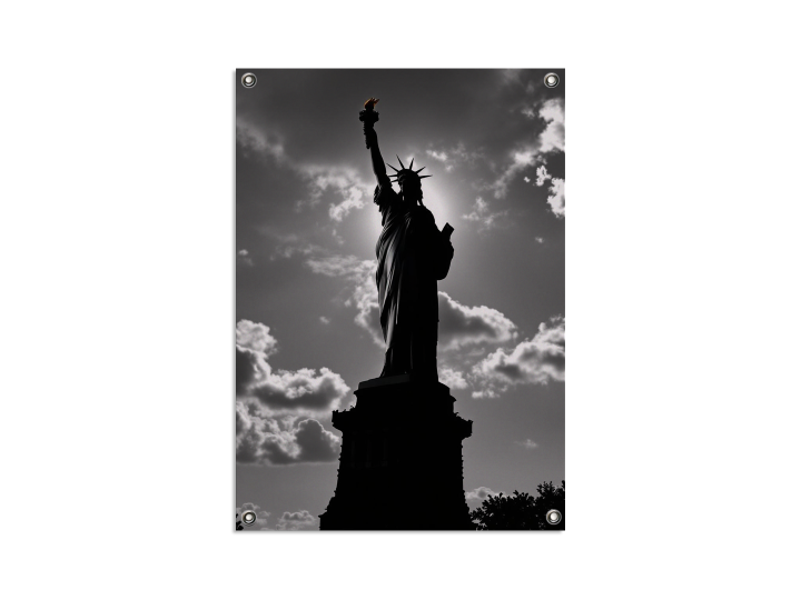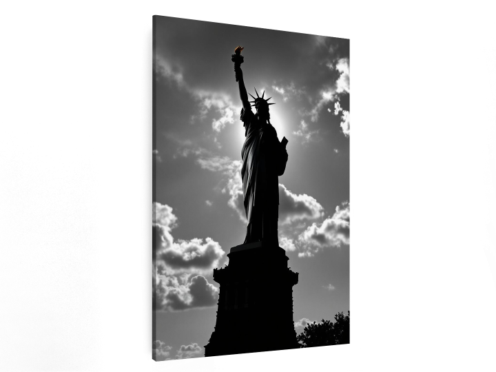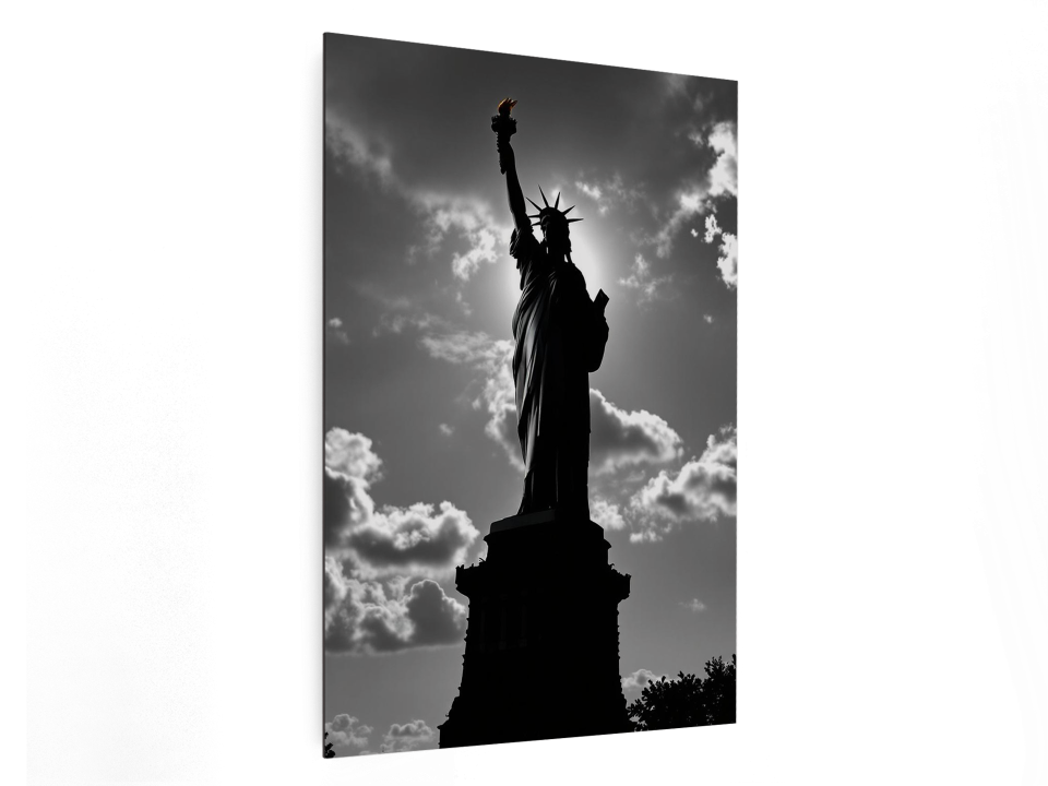Een ultra realistische professionele zwart/wit foto van het vrijheidsbeeld, met een prachtige lichtinval en super verfijnde details, hoge kwaliteit en prachtige compositie.