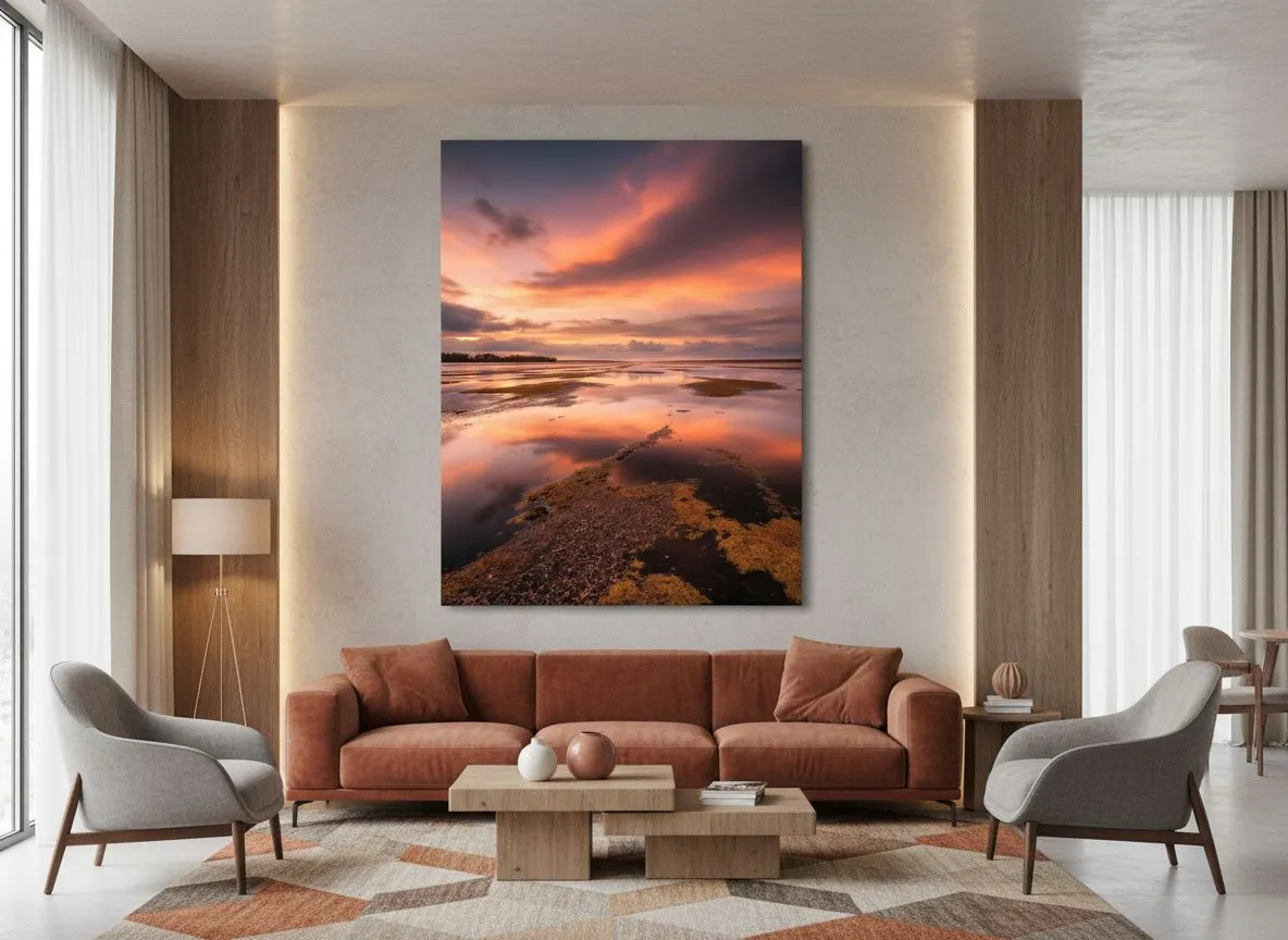 Dit design maakt deel uit van onze Landschappen collectie. Landschappen hebben een rustige en elegante uitstraling met vaak mooie simplistische kleurpatronen. Echt een mooie blikvanger voor jouw interieur! Wil je nou echt iets unieks?… kopieer dan deze prompt en plak deze (eventueel met nog wat persoonlijke aanpassingen) in onze Image Generator. Hierdoor haal je een echt uniek design in huis!
